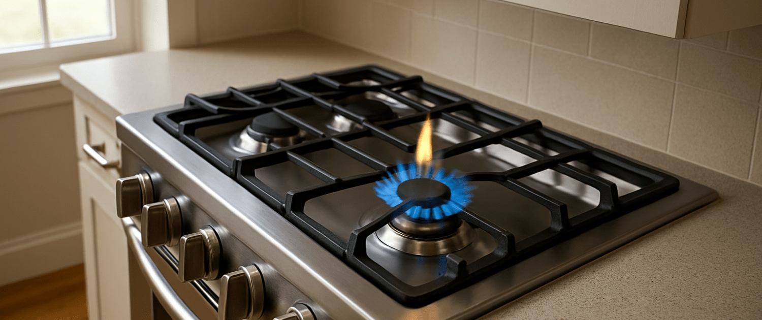 If your cooktop isn’t receiving the right pressure, it can affect combustion. Make sure your appliance is matched to your home’s gas type (natural or propane) and that the regulator is functioning properly.