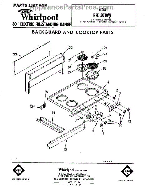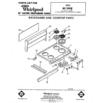 Parts for Whirlpool RFE3010W: 01 - Back Guard And Cook Top Parts