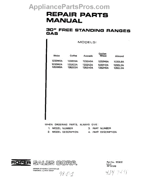 Parts for 1232W2A