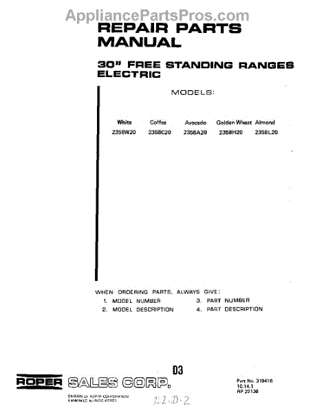 Parts for 2358W20