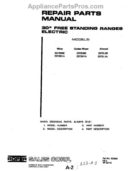 Parts for 2372W1A