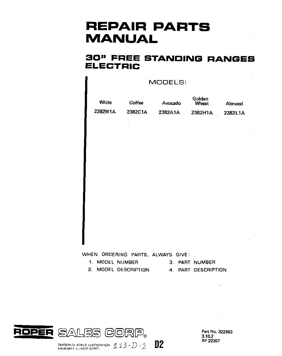 Parts for 2382W1A