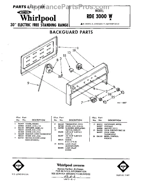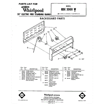 Parts for Whirlpool RDE3000W: 01 - Back Guard Parts