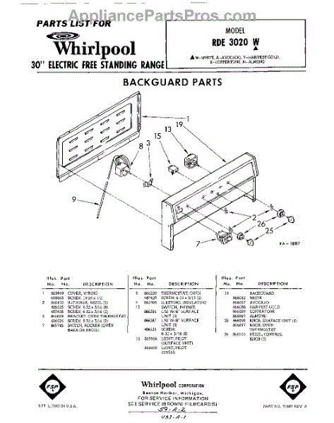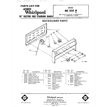 Parts for Whirlpool RDE3020W: 01 - Back Guard Parts