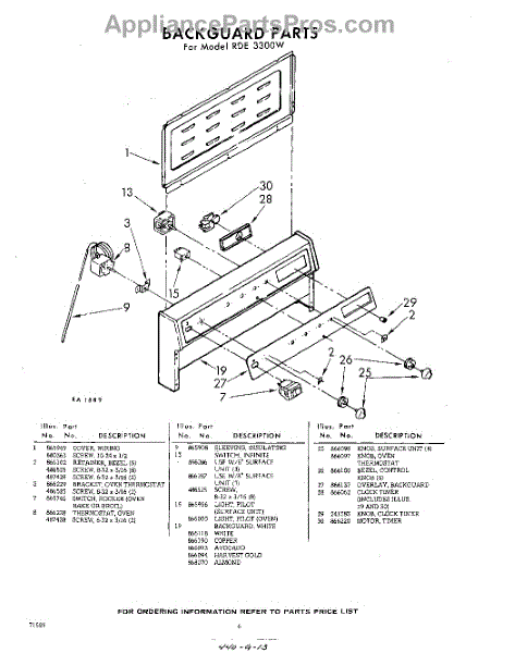 Parts for Whirlpool RDE3300W: 06 - Back Guard Parts