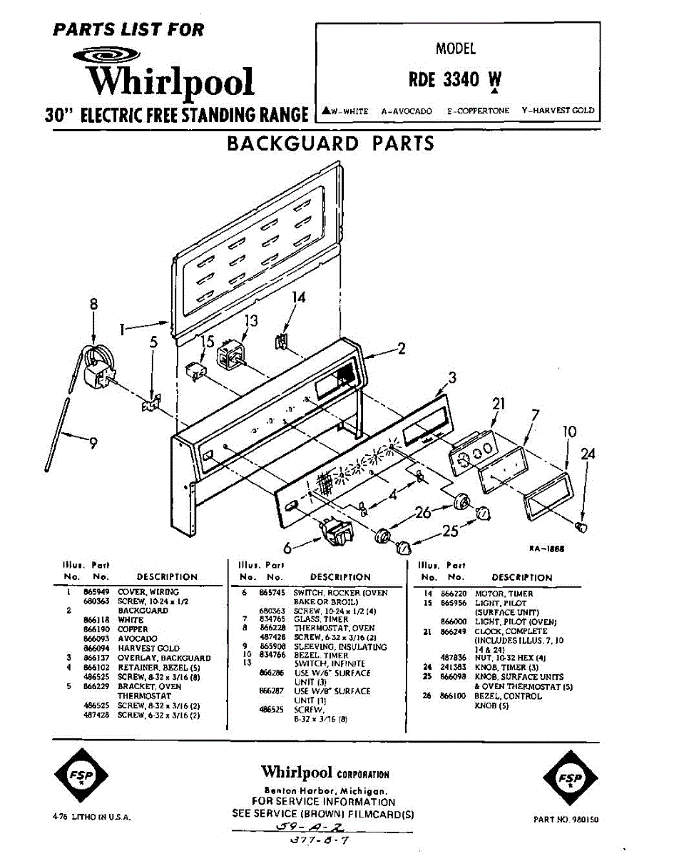 Parts for Whirlpool RDE3340W: 01 - Back Guard Parts