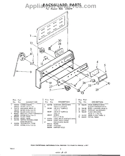 Parts for Whirlpool RDE3360W: 06 - Back Guard Parts