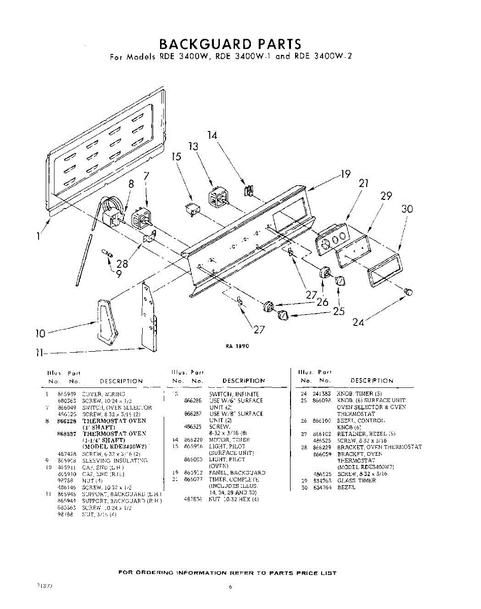 Parts for Whirlpool RDE3400W: 06 - Back Guard Parts