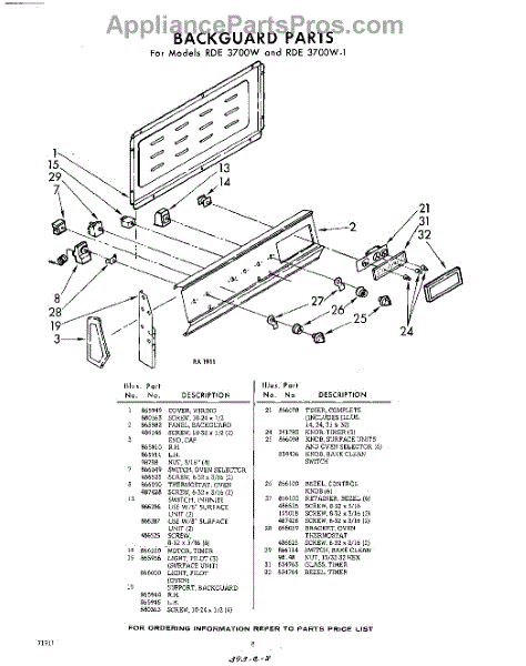 Parts for Whirlpool RDE3700W1: 08 - Back Guard Parts