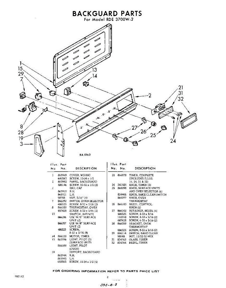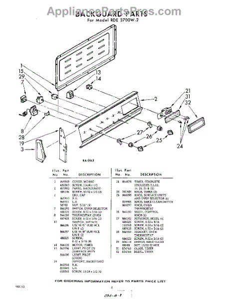 Parts for Whirlpool RDE3700W2: 08 - Back Guard Parts