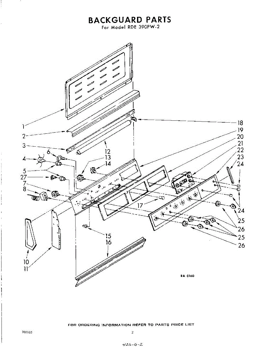 Parts for Whirlpool RDE390PW2: 02 - Back Guard Parts