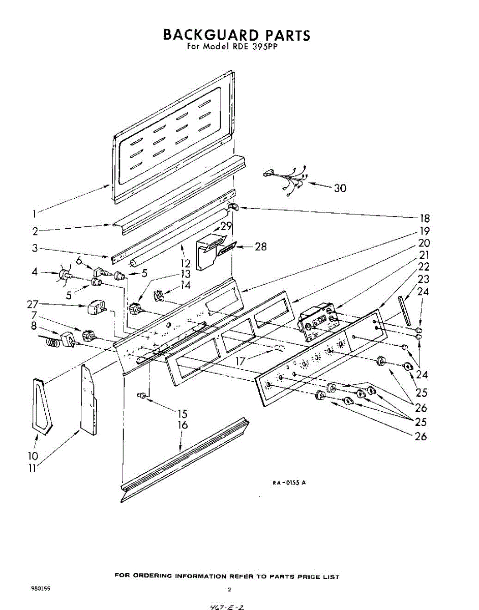 Parts for Whirlpool RDE395PP: 02 - Back Guard Parts