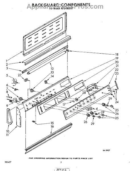 Parts for Whirlpool RFE4900W: 02 - Back Guard Parts