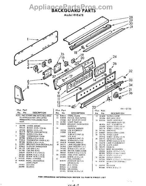 Parts for Whirlpool RVE478: 07 - Back Guard Parts