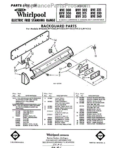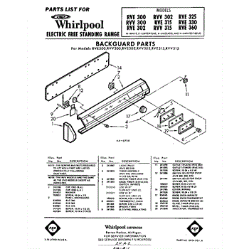 Parts for Whirlpool RVV300: 01 - Back Guard Parts