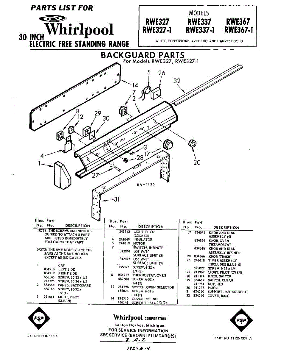 Parts for Whirlpool RWE337: 01 - Back Guard Parts