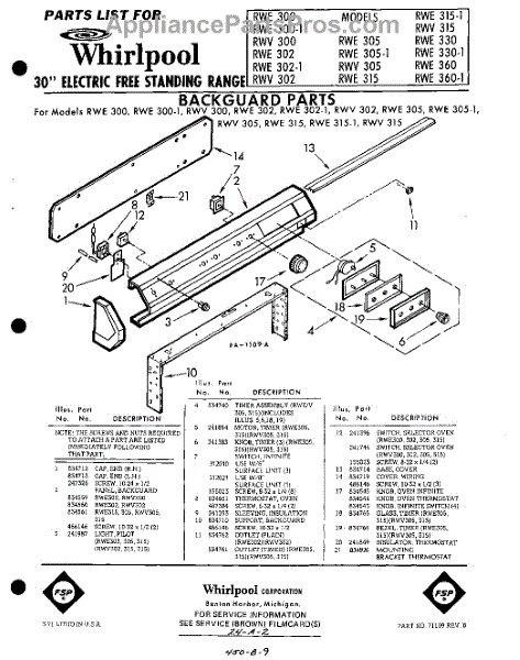 Parts for Whirlpool RWE3601: 01 - Back Guard Parts