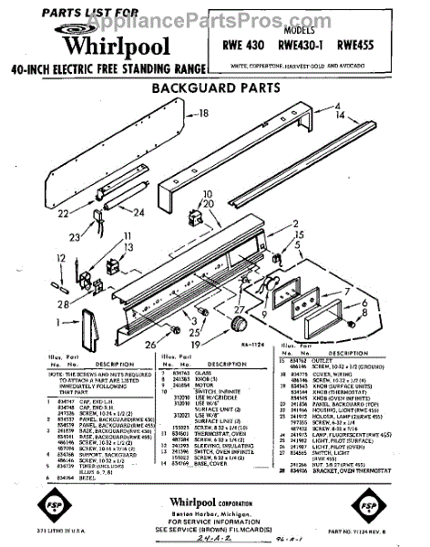 Parts for Whirlpool RWE430: 01 - Back Guard Parts