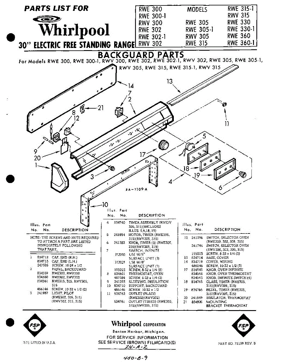 Parts for Whirlpool RWV305: 01 - Back Guard Parts