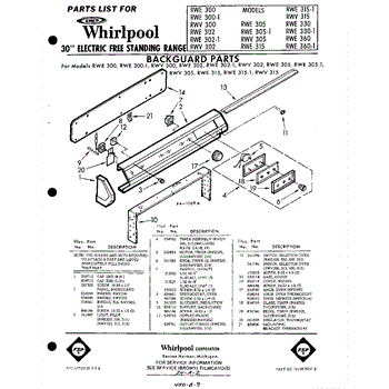 Parts for Whirlpool RWV315: 01 - Back Guard Parts