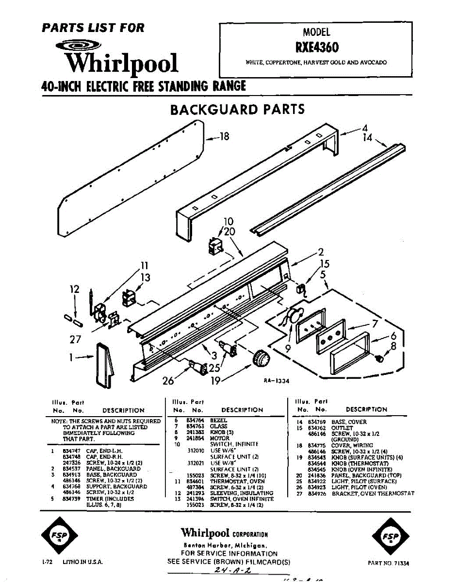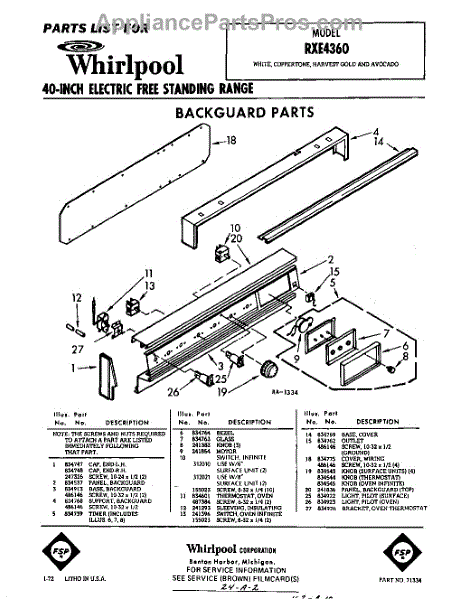 Parts for Whirlpool RXE4360: 01 - Back Guard Parts