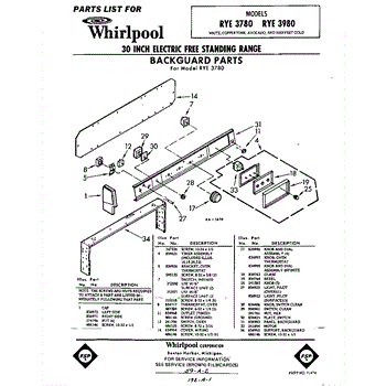 Parts for Whirlpool RYE3780: 01 - Back Guard Parts