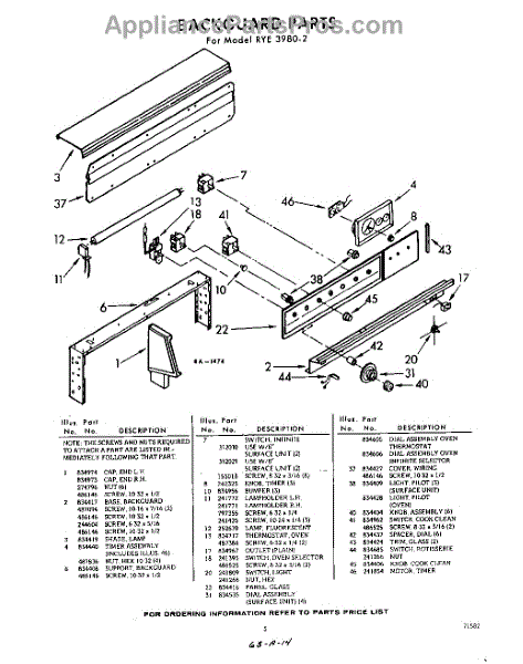 Parts for Whirlpool RYE39802: 05 - Back Guard Parts