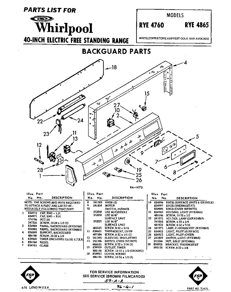 Parts for Whirlpool RYE4760: 01 - Back Guard Parts
