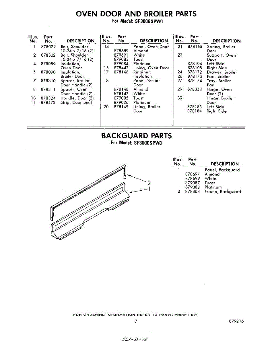 Parts for Whirlpool SF3000SPW0: 07 - Back Guard Parts