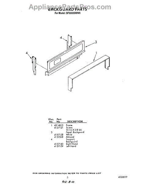 Parts for Whirlpool SF3000SWN0: 05 - Back Guard Parts
