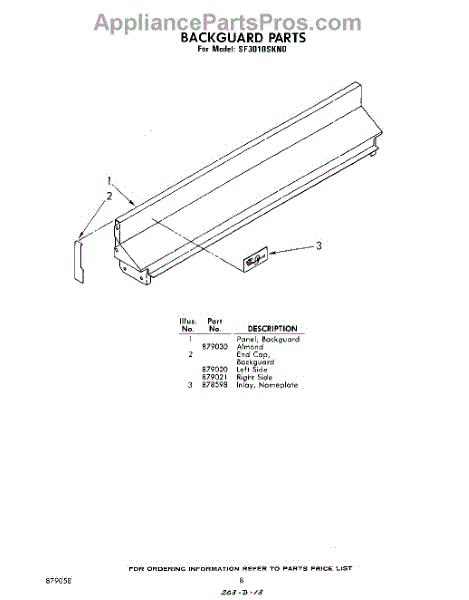 Parts for Whirlpool SF3010SKN0: 08 - Back Guard Parts