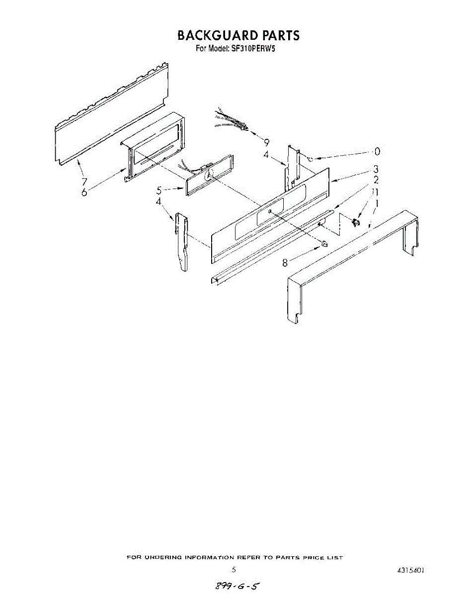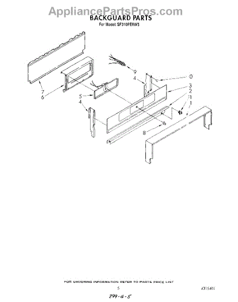 Parts for Whirlpool SF310PERW5: 04 - Back Guard Parts