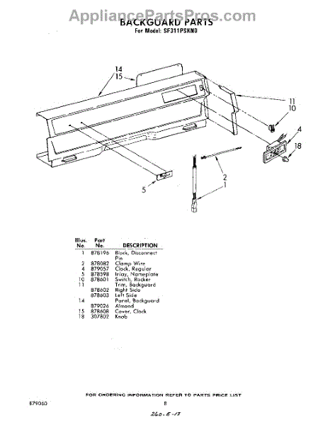 Parts for Whirlpool SF311PSKN0: 08 - Back Guard Parts