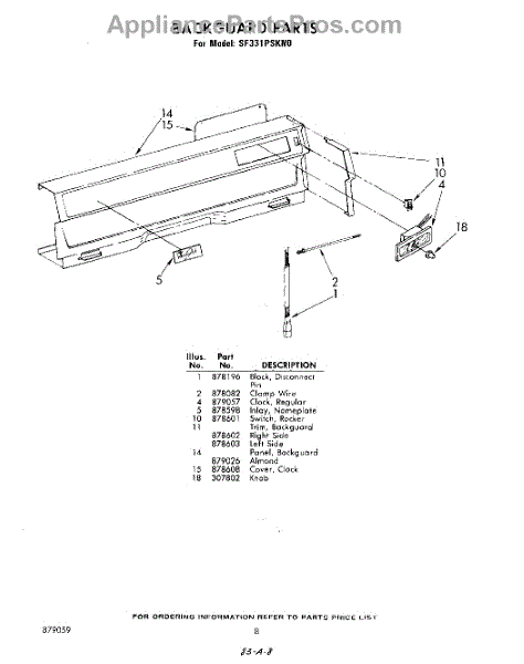 Parts for Whirlpool SF331PSKN0: 08 - Back Guard Parts