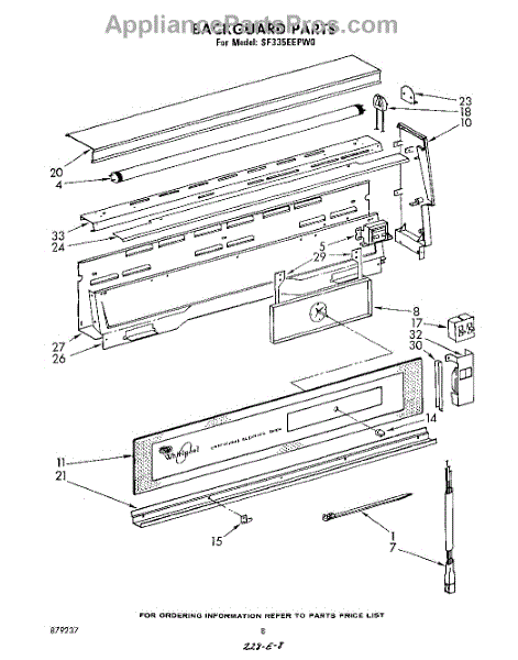 Parts for Whirlpool SF335EEPW0: 06 - Back Guard Parts