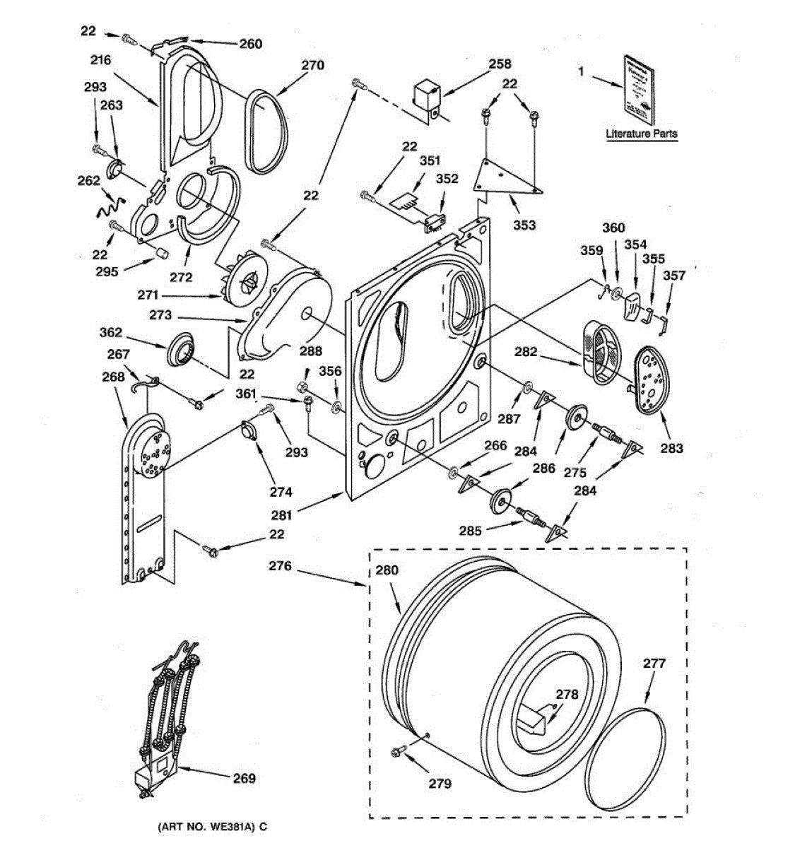 Parts for Ge DSKP233ETAAB: 02 - Back Panel & Drum Parts
