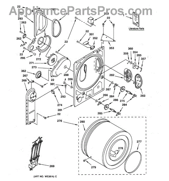 Parts for Ge DSKP233ETAWB: 02 - Back Panel & Drum Parts
