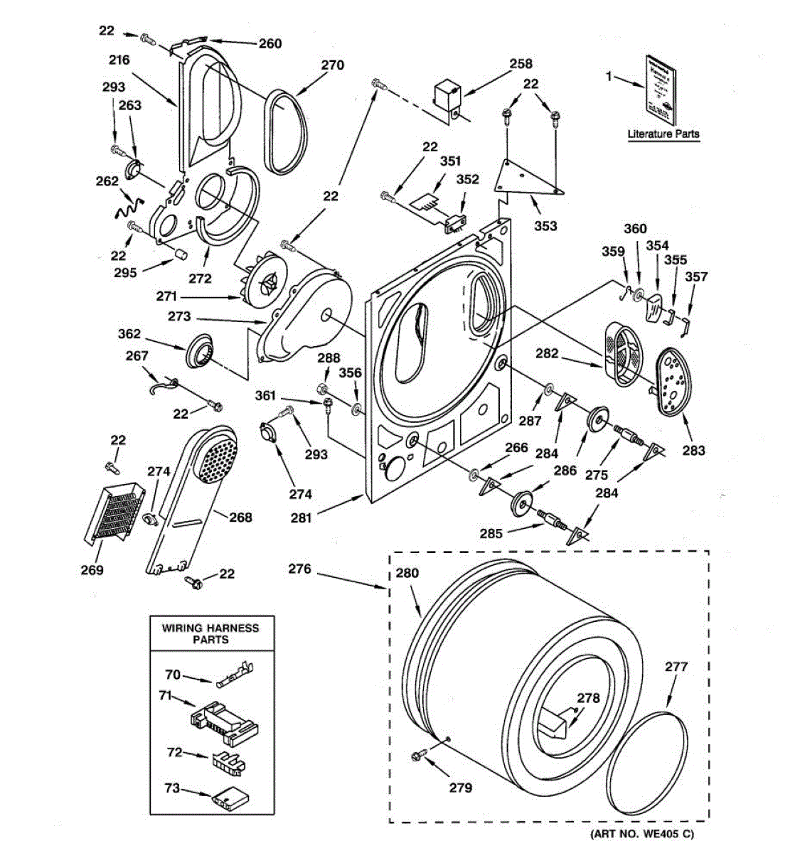 Parts for Ge DSKP233ETDWB: 02 - Back Panel & Drum Parts
