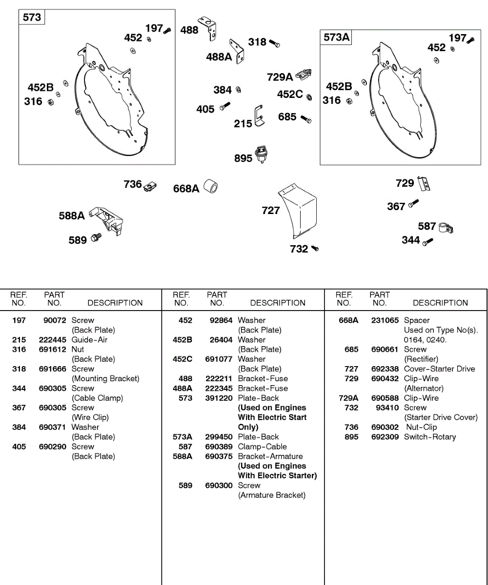 Parts for Briggs & Stratton 326432-0744-01: Back Plates Parts