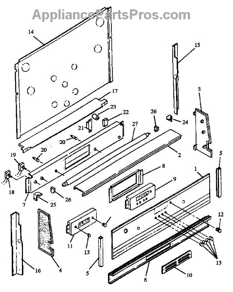 This factory screw secures appliance components to their mounting points. Replace missing, worn, or stripped hardware to restore a tight fit, proper alignment, and quieter operation across the affected assembly.