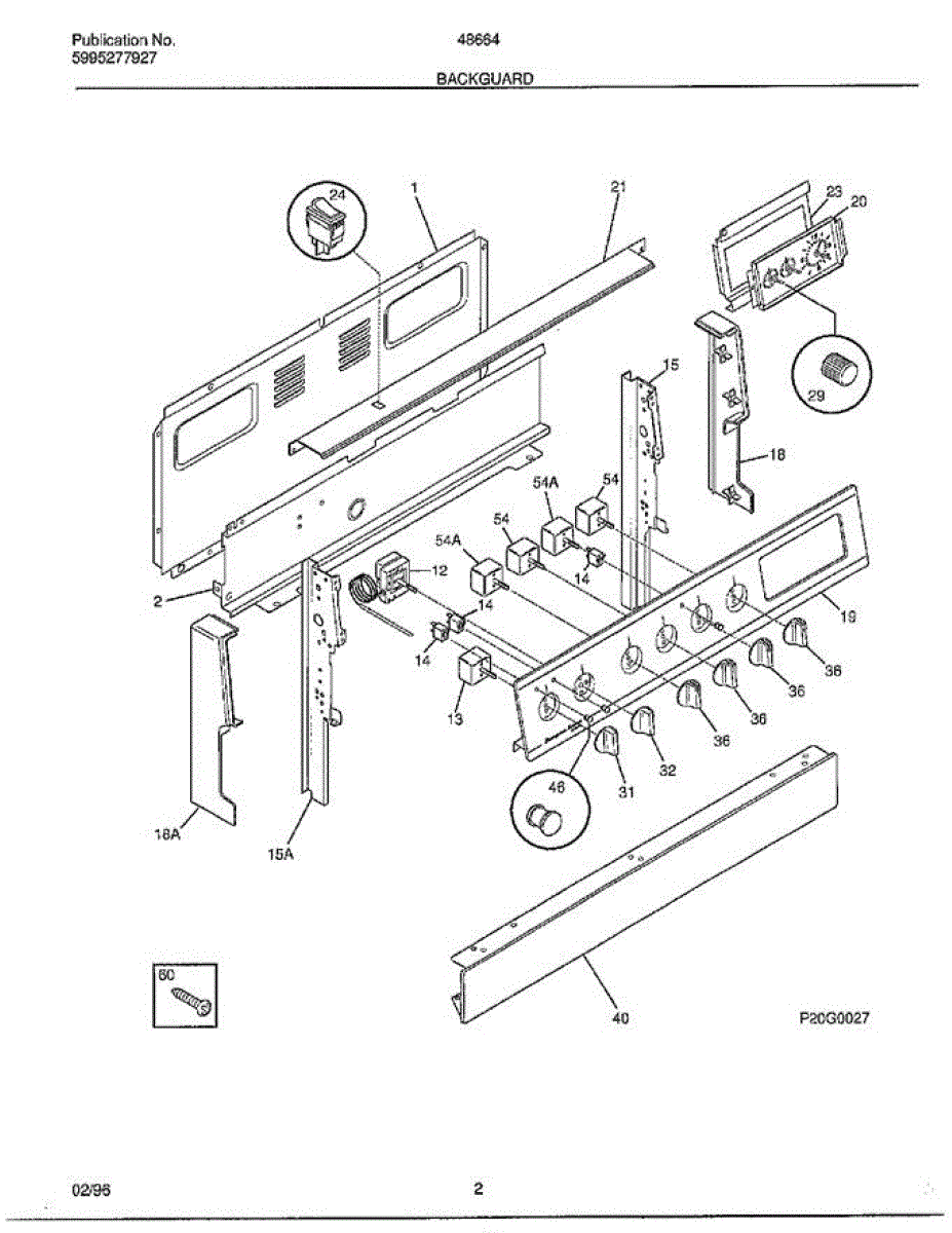 Parts for Frigidaire 486647C: Backguard Parts
