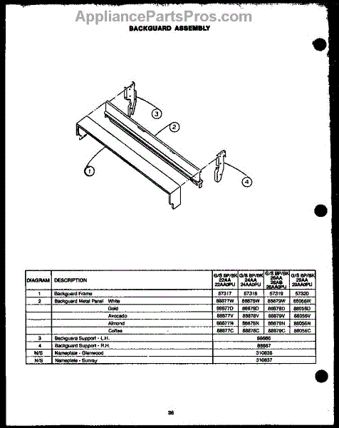 Parts for Amana SBK26DA: Backguard Assembly (Gbp24aa0pu) (Sbp24aa0pu) (Gbk24aa0pu) (Sbk24aa0pu) (Gbp26aa) (Sbp26aa) (Gbk26aa) (Sbk26aa) (Sbp26ab) (Gbp26ab) (Sbk26ab) (Gbk26ab) Parts