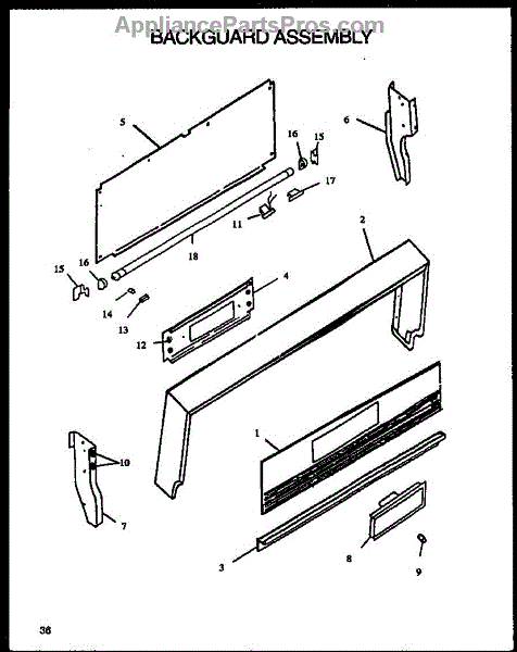 Backguard Assembly (Rls351) (Rms351) (Rls352) (Rms352) (Rls353) (Rms353) (Rms354) (Rls354) (Rls346) (Rms346) (Rls356) (Rms356) (Rls359) (Rms359) (Rls358) (Rms358) (Rls368) (Rms368)