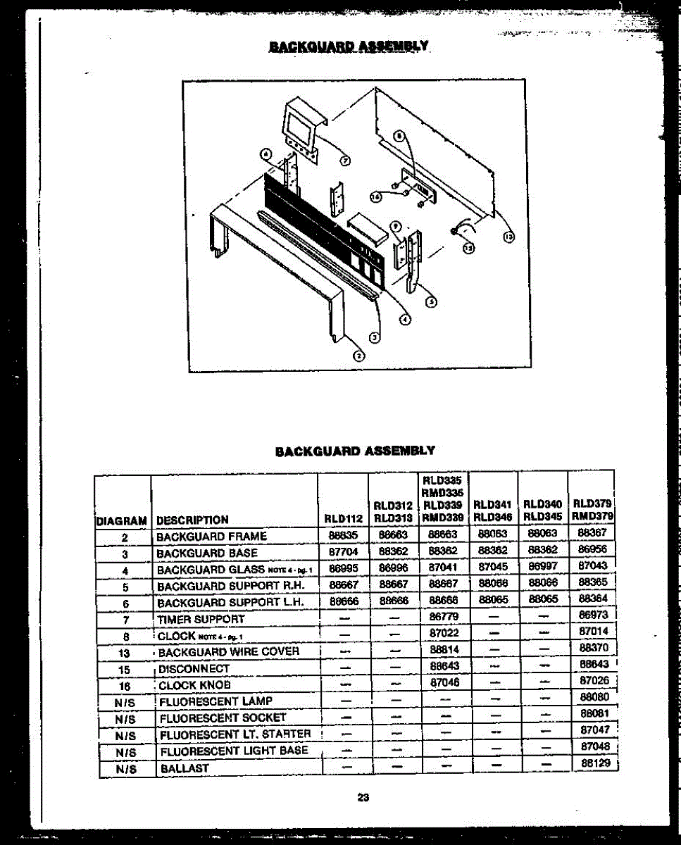 Backguard Assembly (Rld112) (Rld312) (Rld340) (Rld341) (Rld335) (Rmd335) (Rld313) (Rld345) (Rld346)