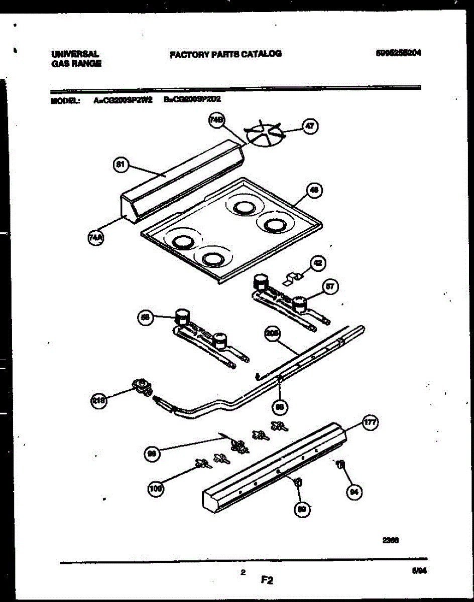 Parts for Frigidaire CG200SP2W2: 02 - Backguard, Cooktop And Burner Parts