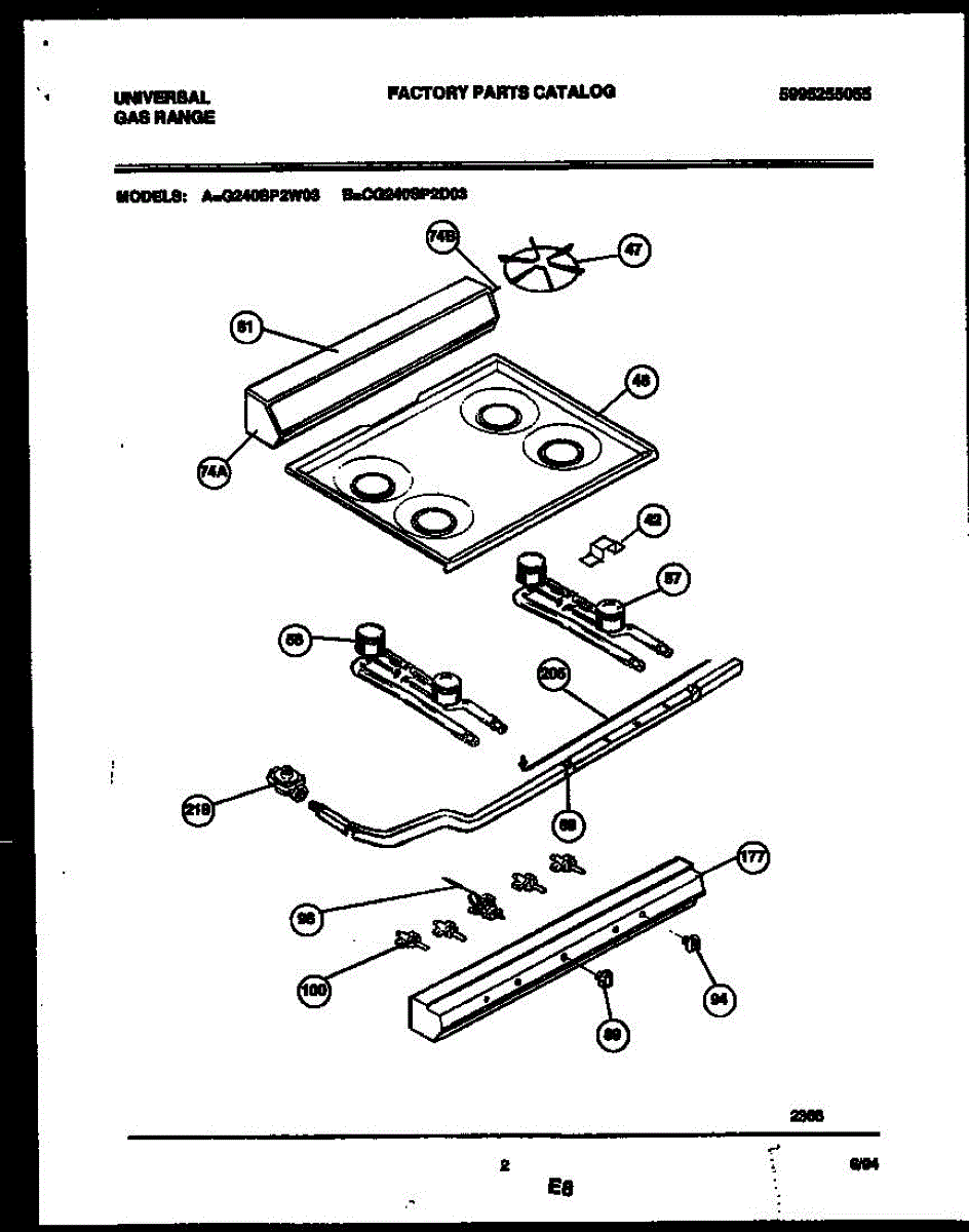 Parts for Frigidaire CG240SP2W3: 02 - Backguard, Cooktop And Burner Parts