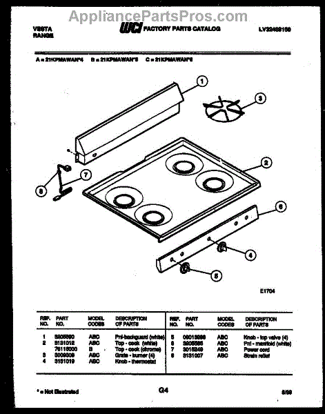 Parts for Frigidaire 21KPMAWAN4: 02 - Backguard And Cooktop Parts