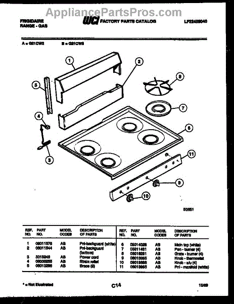 Parts for Frigidaire G21CW3: 02 - Backguard And Cooktop Parts