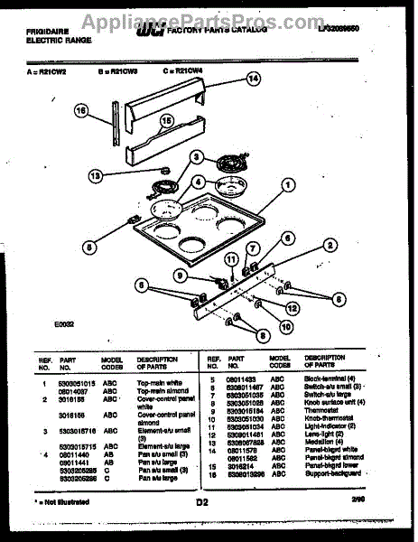 Parts for Frigidaire R21CW2: 02 - Backguard And Cooktop Parts