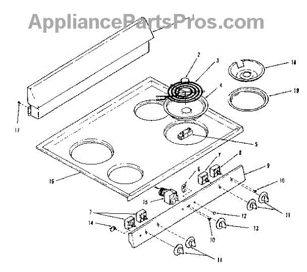 Parts for Kenmore 119.9038710 (1199038710, 119 9038710): Backguard And Cooktop Parts